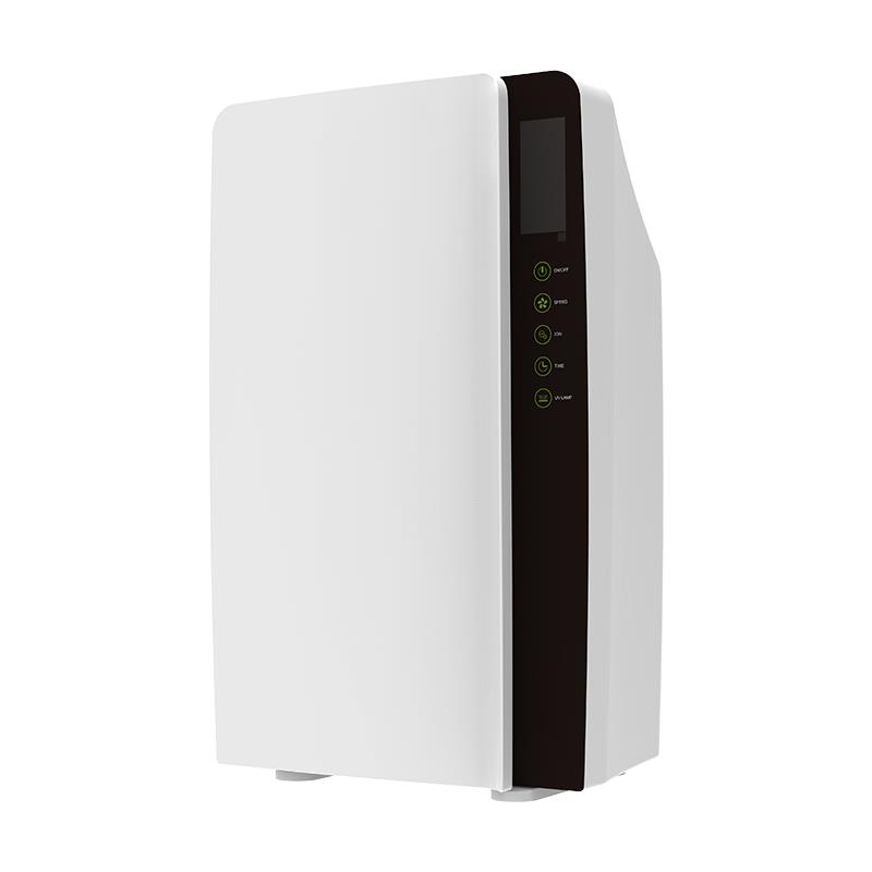 1. Shell: high-strength ABS body, silk screen logo; 2. Remote Control; 3. Filtration system: six-layer filtration (Pre-cotton+HEPA+Activated carbon+photocatalyst+Negative ion+UVC), filter replacement reminder function; 4. Automatic wind speed adjustment four-speed wind speed adjustable, sleep mode ultra-quiet; 5. Timing function,1-24Hours can be set 6. Dust sensor, air quality value display; 7. 254nm UVC disinfection,which can be turn on or off 8. LED display showing functions. 9. WiFi APP control