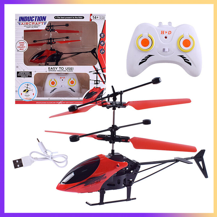Induction Helicopter - Mini 2 Channel Remote Control Aircraft with Altitude Hold | LED Light Flying Plane Toys for Kids | Boys and Girls Birthday Christmas Gift | Indoor and Outdoor Play Games (Red,Bl