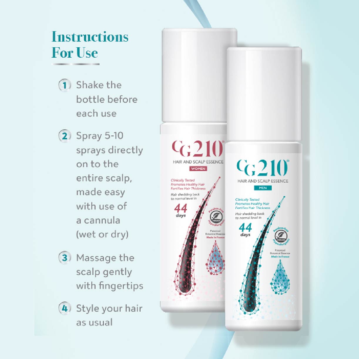 Fort best results apply CG210® twice daily for 9 months and then once daily for maintenance.